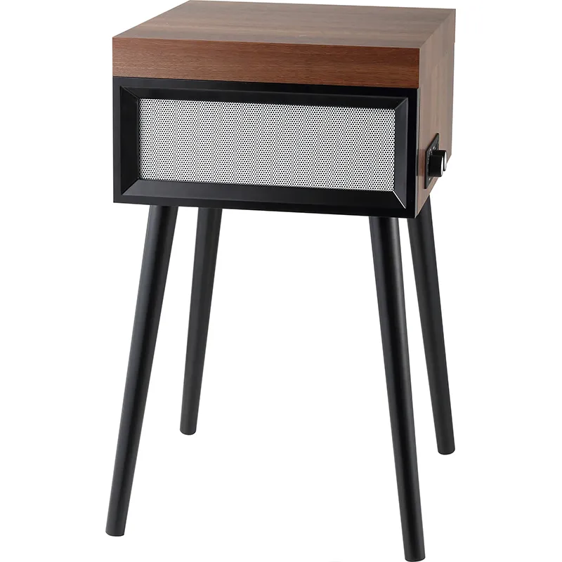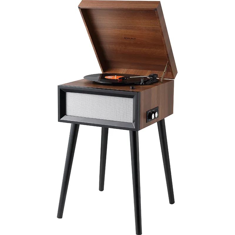 This Record Player features legs that can turn it into a stylish accent piece or removed to use as a tabletop record player.